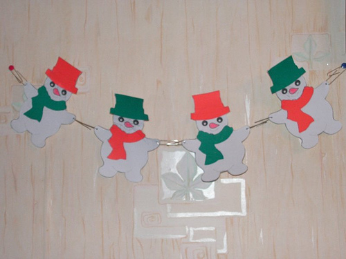 Одной из самых простых новогодних поделок из бумаги по праву можно считать гирлянду.Все мы с детства хорошо помним, как мы украшали такими бумажными гирляндами елку не только дома, но и в школе или детском саду. Сделать гирлянду из бумаги очень просто: цветную бумагу нарезают на полоски одинаковой ширины, первая полоска склеивается в кольцо, а каждая последующая продевается в предыдущее кольцо и также приклеивается. Поделка из бумаги идеальна для детей 4-5 лет.