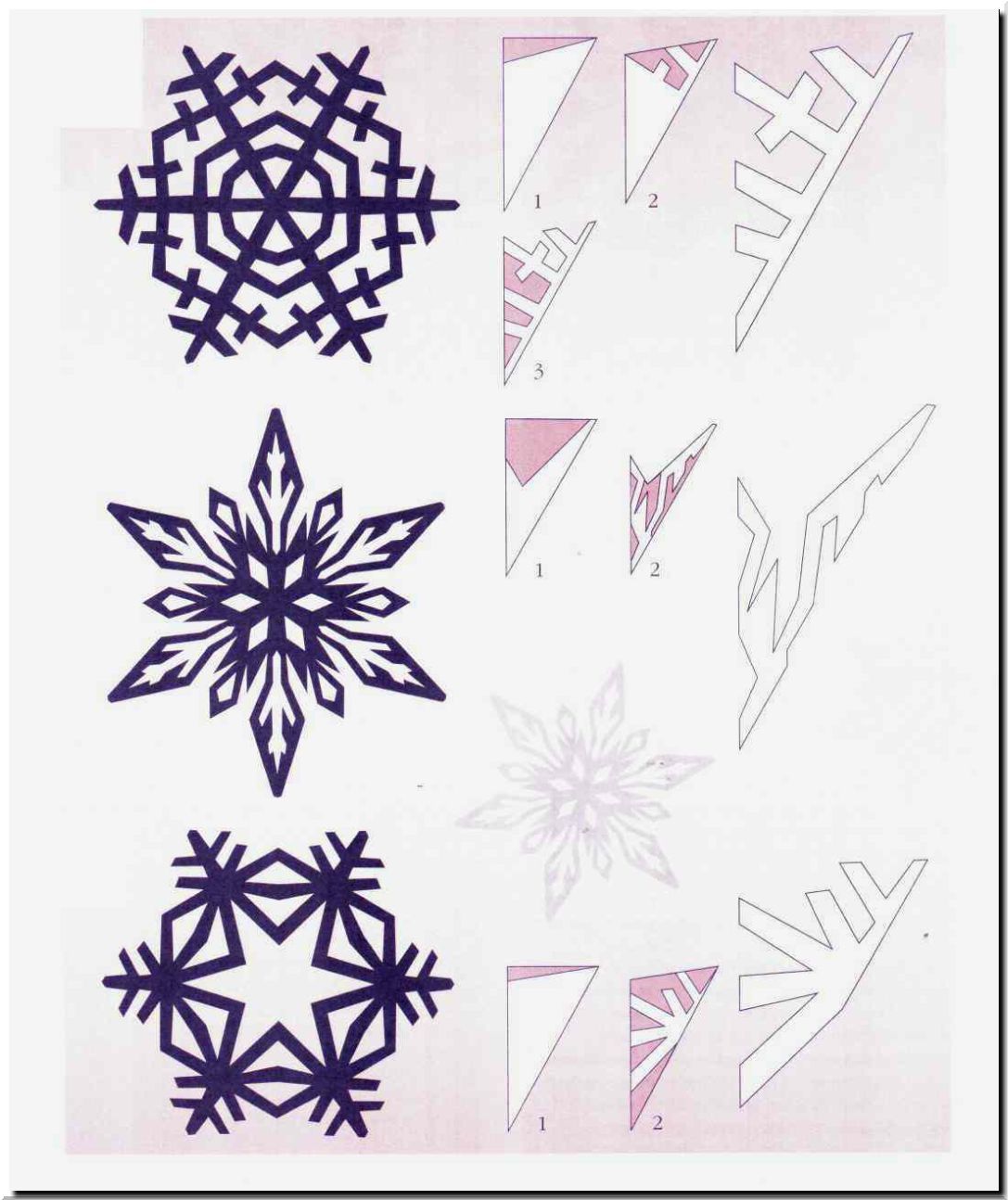 По аналогии вырезаются снежинки схемы которых представлены далее.
