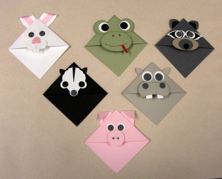 Ещё один очаровательный способ собрать закладку из бумаги представлен милыми зверюшками или забавными монстриками. Каждый сам подбирает то оформление, которое ему по душе.