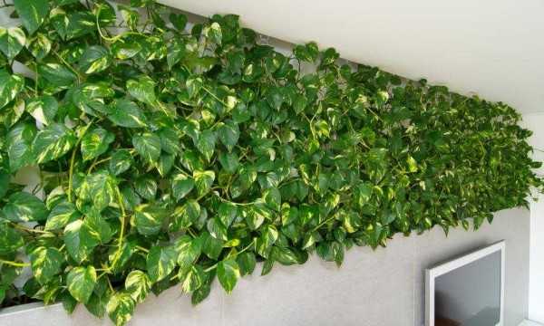 Немного проще создавать композиции из вьющихся растений. Их высаживают в длинную емкость, привязывают леску, и по ней распределяют плети. Правильно подобранные растения смотрятся замечательно. Единственный минус — растет «декор» долго.