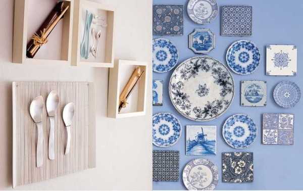 Это могут быть сувенирные тарелки, привезенные с отдыха, или разрисованные своими руками. Они могут украшать как кухню, так и зал или даже отлично подойдут для стен в санузле! Существует несколько способов развесить их на стене и методов крепления, детальнее можно посмотреть по ссылке:»
