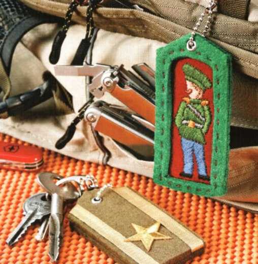Также из галстуков можно сделать брелоки. Достаточно милые сувениры к 23 февраля своими руками. Просто завяжите мини-галстук из старого на кольце брелока и обрежьте лишнее.