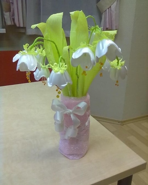 Вазу с цветком сможет сделать даже ребенок. Как же удивится мама, когда малыш вручит ей такой презент. Наверняка в доме таких изделий еще нет, и оно займет почетное место в комнате.