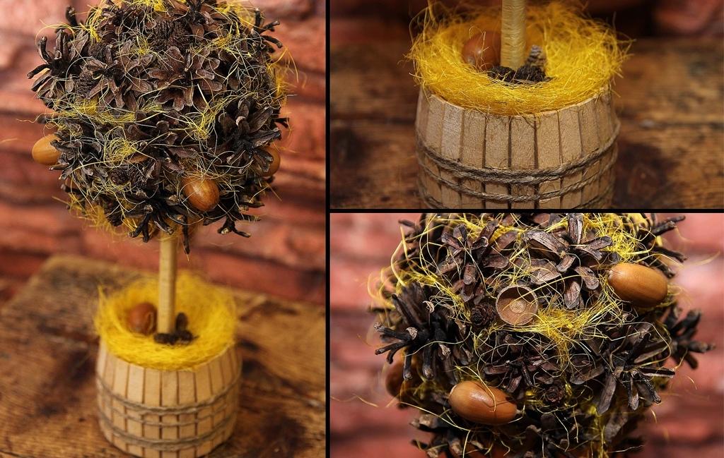 Чтобы защитить топиарий из природного материала от повреждений насекомыми, готовое дерево слегка обрабатываем любым лаком для волос.Осенний топиарий «Золотые ручки» — фото презентация