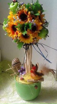 Эту поделку на наш конкурс «Осенняя мастерская» прислали Кононова Татьяна Юрьевна и ее дочь Юлиана (2 года 10 месяцев) из Приморского края (Пожарский район, пгт. Лучегорск). Они назвали свой осенний топиарий «Мечта дачника».
