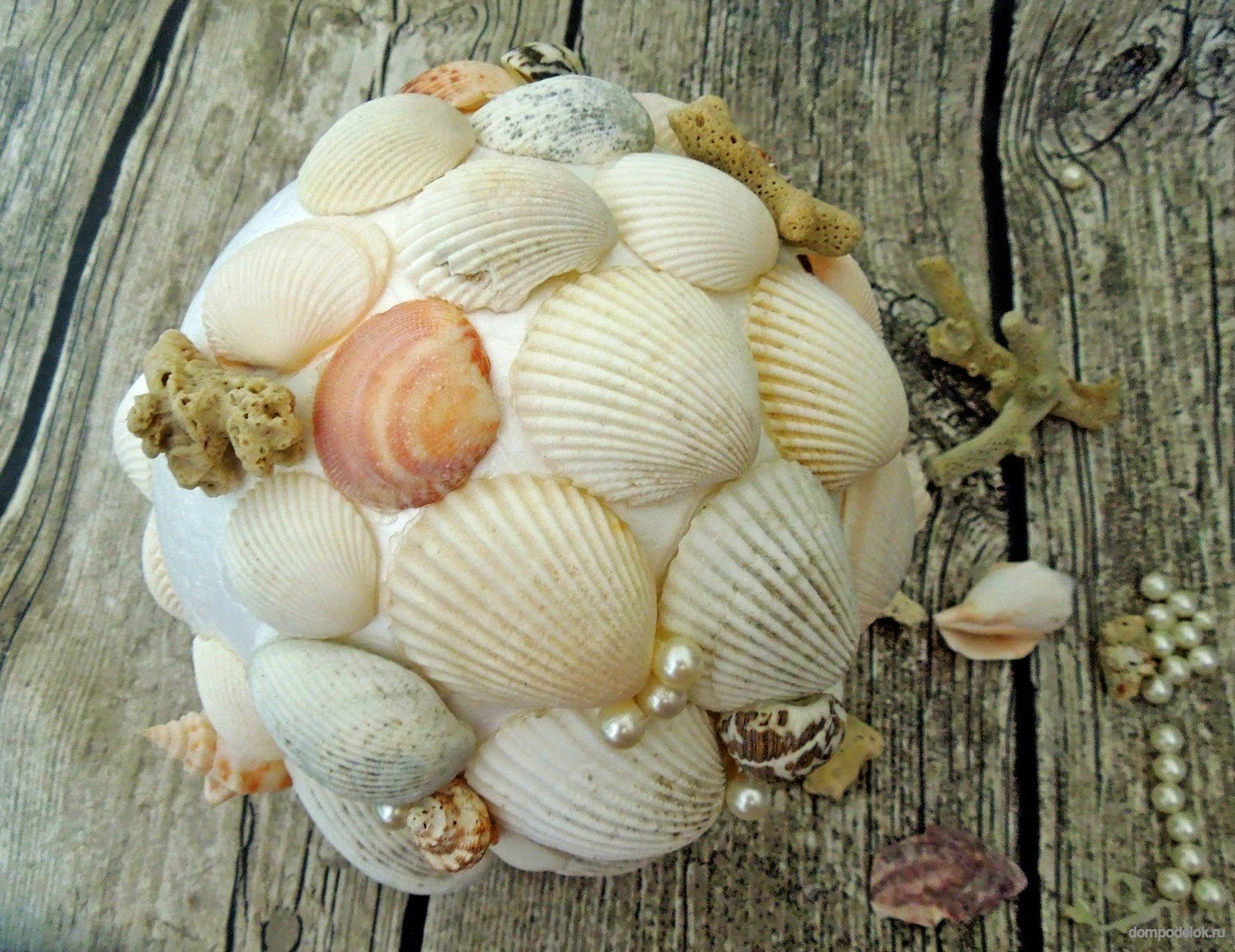 Сегодня в магазинах для рукоделия продают большое количество заготовок, на основании которых получатся оригинальные поделки. Если вы найдете пенопластовый шар, то ракушки хорошо приклеятся при помощи горячего клея. Еще один способ – взять любой шар и подготовить специальную смесь из песка и плиточного клея. Этот состав наносится на шар с помощью шпателя, чтобы слой был равномерным, затрите его при помощи тряпочки.