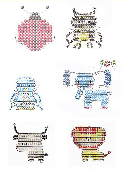 Наиболее популярные поделки из бисера со схемами – компактные фигурки животных, насекомых, цветы, рожицы, пирожное или мороженое. Готовое изделие можно использовать как украшение: брошь, подвеску на одежду, сумку или телефон.