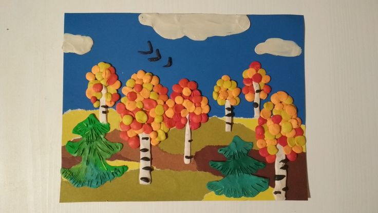 Для создания этой осенней поделки из пластилина понадобится картон или плотная бумага. Процесс лепки такой картинки состоит из пяти этапов.