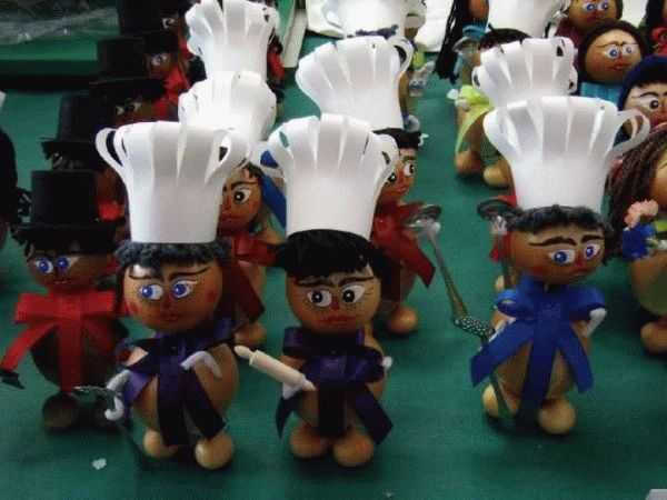 Из луковицы можно сделать оригинальные и забавные игрушки и фигурки, любимые персонажи детских сказок и рассказов. Основное их достоинство — простота изготовления и доступность материала в любое время года. Луковицы легко разрезаются ножом и протыкаются шилом. Форма луковицы позволяет создавать поделки мгновенно, почти ничего не доделывая. Например, фигурка «Чипполино». Достаточно приделать луковке глаза, нос, рот, и он ожил.