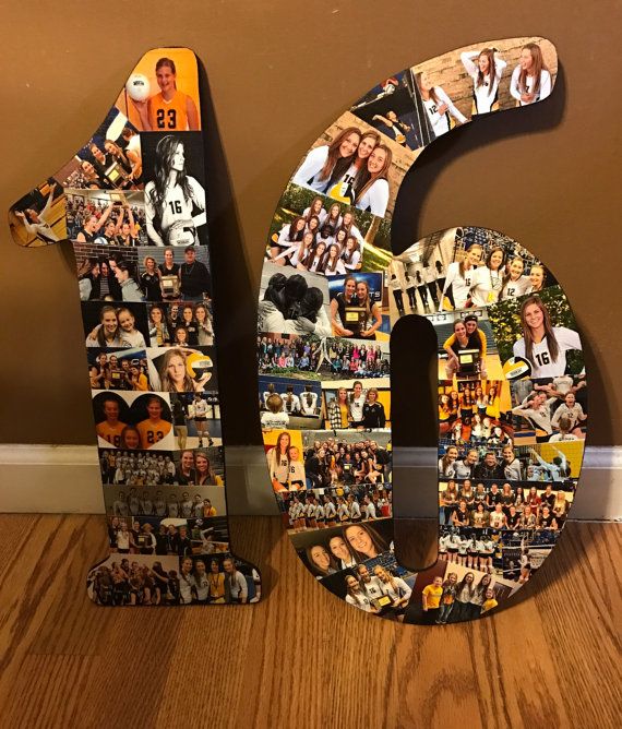Можно заказать основу цифры из дерева и также обклеить ее фото: