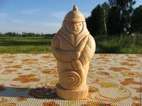 В данном случае задача несложная даже начинающих — изготовление фигурки высотой около 15 см. Для работы потребуются прямые и желобчатые, а также У-образные резцы. Для выполнения черт лица и конечностей предлагается специальный маленький резец. Следует иметь в виду, что при изготовлении небольших фигурок часто приходится резать поперёк направления волокон древесины. Для этого просто необходимы осторожность и предусмотрительность при использовании инструмента и острые заточенные резцы.