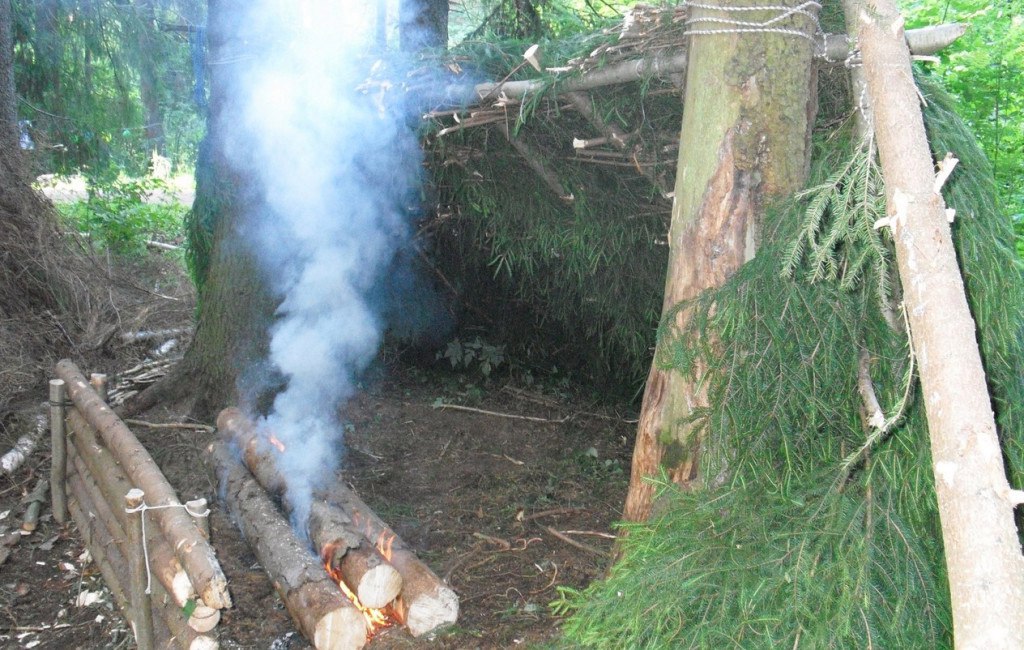 Не тратить силы на многочасовой поход в непонятную сторону, прежде всего. Осмотреться в поисках вероятных убежищ, предоставленных самой природой. Найдёте поблизости окоп, землянку или пещеру – тем лучше для вас. Не найдёте, подыскивайте безопасное место и приступайте к сооружению шалаша из подручных материалов. Время в лесу идёт быстро с точки зрения света. Темнеть там начинает быстрее, чем на открытых пространствах. А ночью, к тому же, ещё и холодно, на земле спать нельзя, замёрзнете напрочь, заболеете сразу.