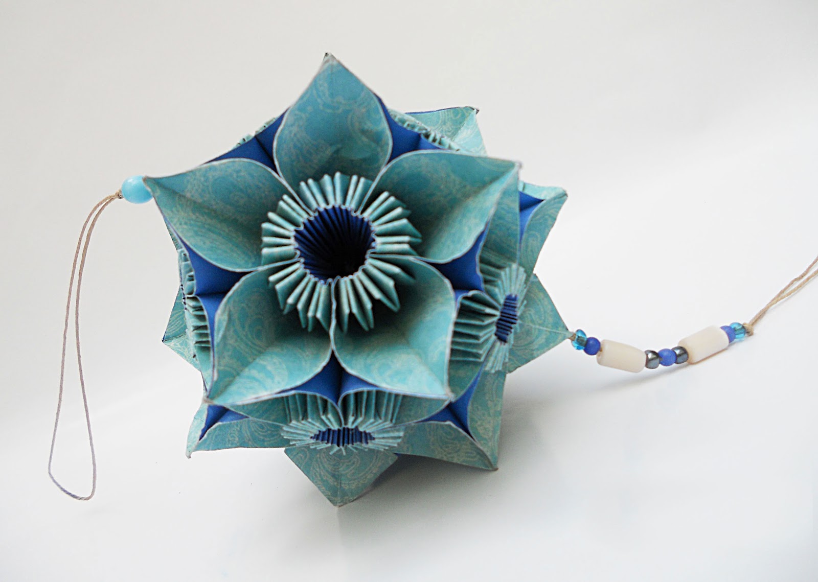Это одна из красивейших кусудам, выполненных в форме объемной звезды. Эффектно выглядит и станет отличным интерьерным украшением или дополнением к подарку. Замечательный заменитель открытки, не так ли?