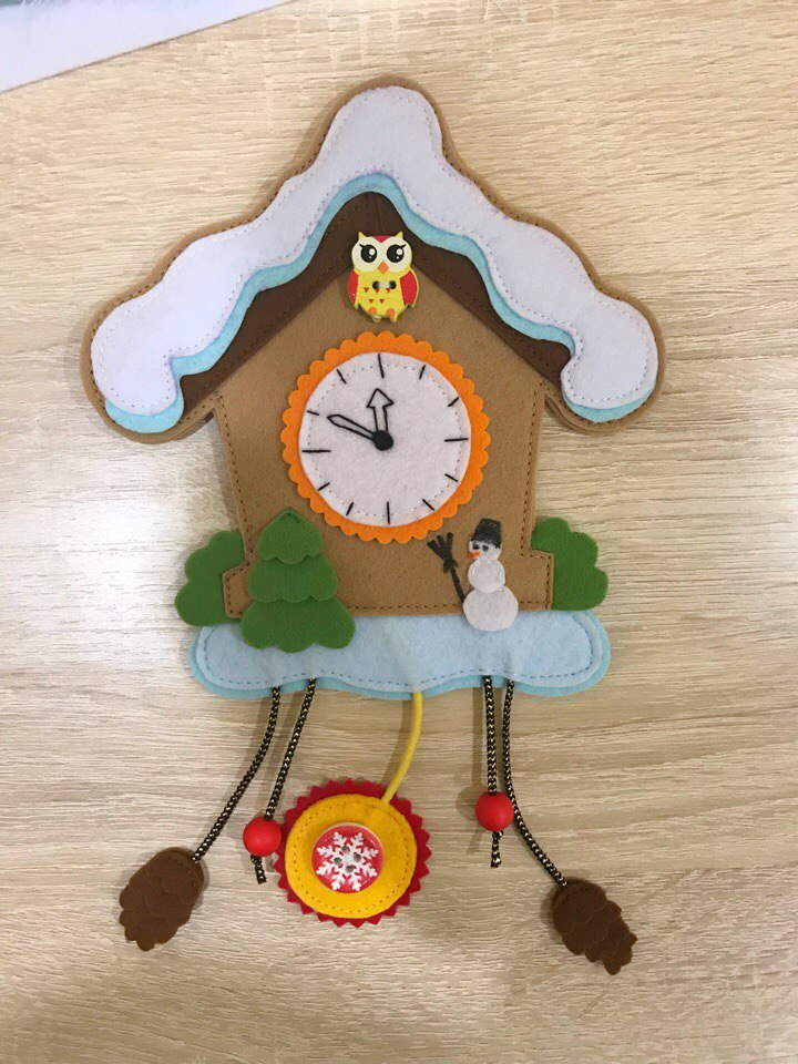 Эти небольшие сказочные часики, сделанные из фетра, можно использовать для украшения детской комнаты. Девочки оценят такой декоративный элемент, сшитый мамиными руками.