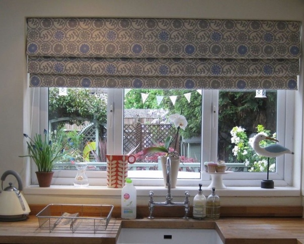 В случае если римские шторы вы решили сшить именно для кухни, к подбору ткани следует подойти со всей ответственностью, ведь даже если ваша кухня оборудована самой мощной и современной вытяжкой, полностью уберечься от пара, копоти и запахов готовящейся пищи все равно не удастся.
