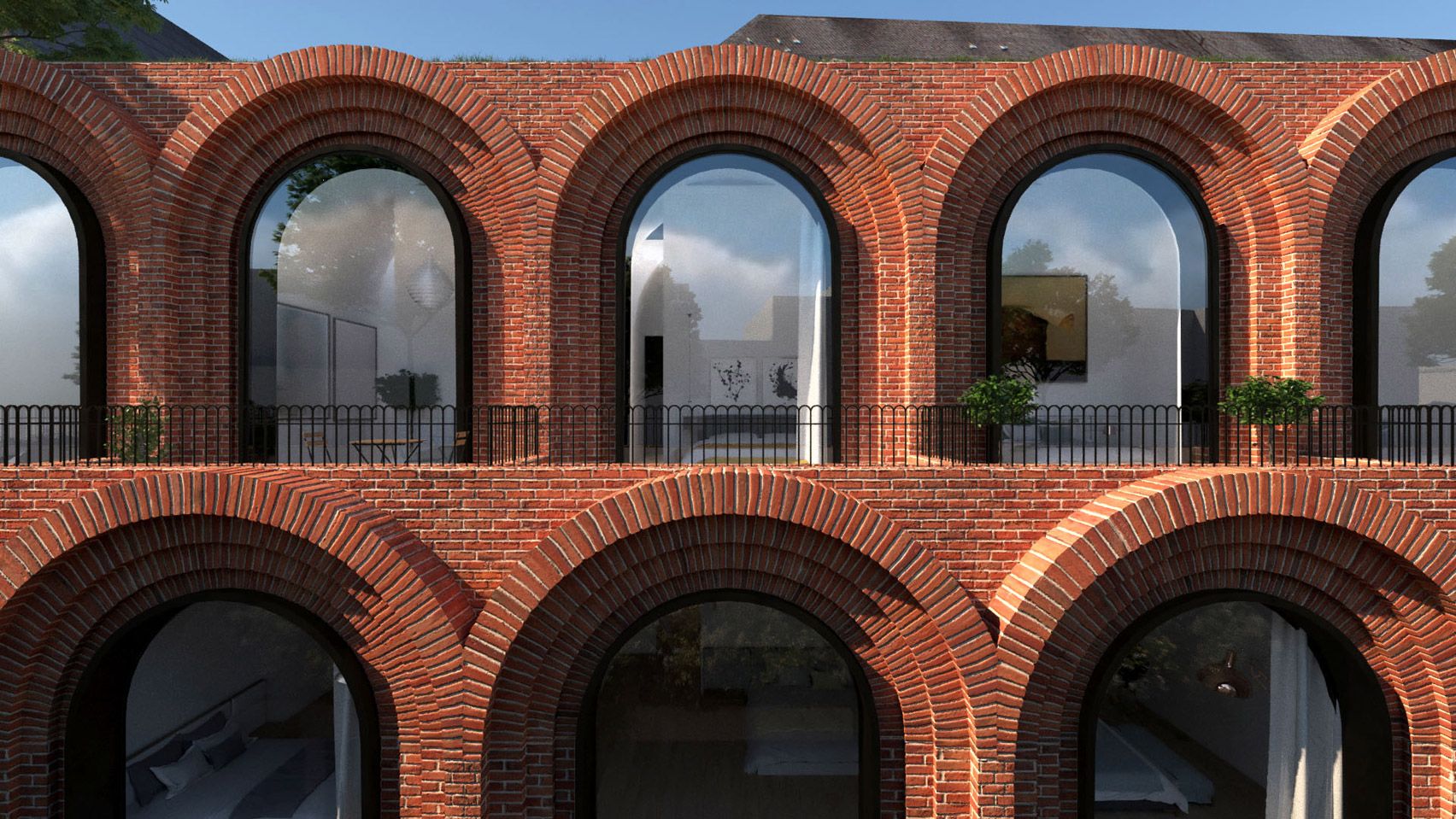 Арочные проемы первого этажа повсюду — эллиптические арки