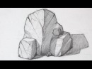 Шаг первый. Сперва набросаем эскиз. Обозначим где будут размещены валуны. Шаг второй. Сделаем им форму более круглой. Шаг третий. Обведем контуры четче, в места соприкосновения валунов сделаем темнее. Шаг четвертый. Теперь добавим растительности и штриховкой нарисуем тень, чтобы выглядело реалистичнее. Готово: А еще я подобрал для Вас дополнительные уроки рисования, вот смотрите: