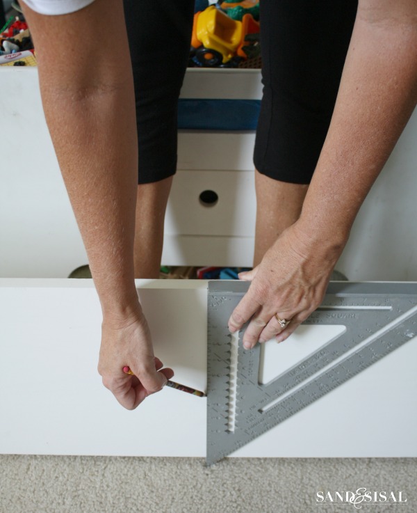СОВЕТ ПО ПЕСКАМ И СИЗАЛУ: Чтобы убедиться, что ваши полки полностью выровнены, используйте квадрат стропила, чтобы нарисовать линию ОБА (изнутри и снаружи) доски, куда вы хотите, чтобы верхняя часть полки шла.