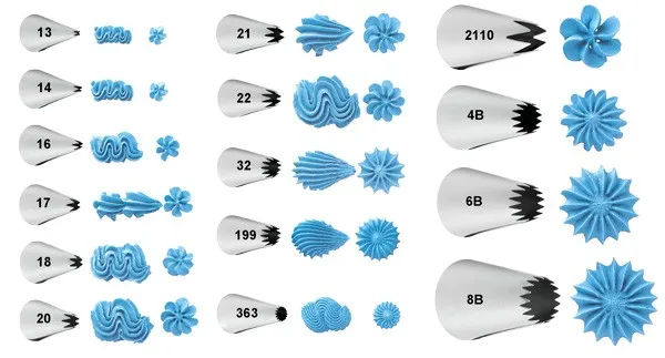 А теперь более подробно покажем на фото, какая насадка для крема какой узор делает.