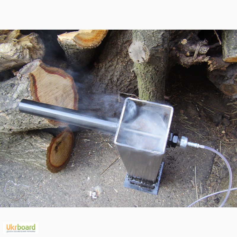 Он работает за счёт двух процессов: нагревания опилок и тления без использования кислорода. Его можно сделать самостоятельно, используя металлическую трубу, эжектор, который создаёт тягу, и компрессор.
