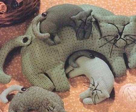 Их существует огромное количество из самых разных материалов. Они могут быть текстильные и вязаные. У всех не похожие очертания, но, несомненно, каждый узнает в них образ кошки или кота. Некоторые из них серьёзные, а есть такие юморные, что без улыбки на них смотреть невозможно. Посмотришь, и плохое настроение в момент улетучится).