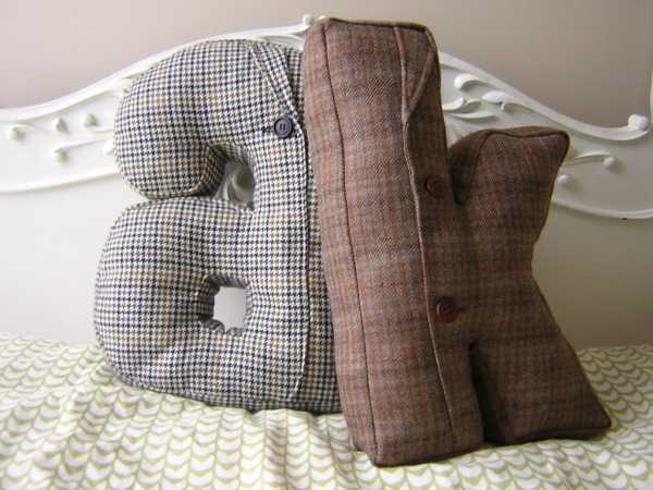 Мягкие игрушки — подушки для детской комнаты могут иметь ещё и обучающее значение. К таким относятся подушки – буквы. Это очень интересная тема, потому что ребёнок будет постоянно видеть не только подушку, но и обучающий материал перед глазами каждый день. Как Вы думаете, насколько быстро и легко он сможет выучить эти буквы? Тем более, если из них состоит его собственное имя.