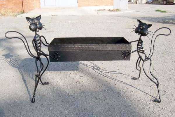 Но зато вот такой креативный мангал не очень тяжелый. Идет сразу в комплекте с помощниками, и подержат, и отнесут куда надо. Хотя для котов это и не привычная работа, но по фото видно, что справляются.