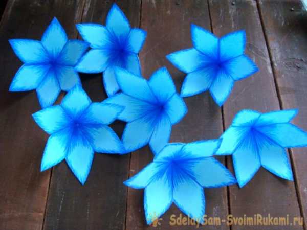 Остальную поверхность клумбы также нужно засадить цветами. Но и их можно сделать в 3Д варианте. Для этого отрежьте маленькие квадратики с очень плотного картона, бумажной коробки.