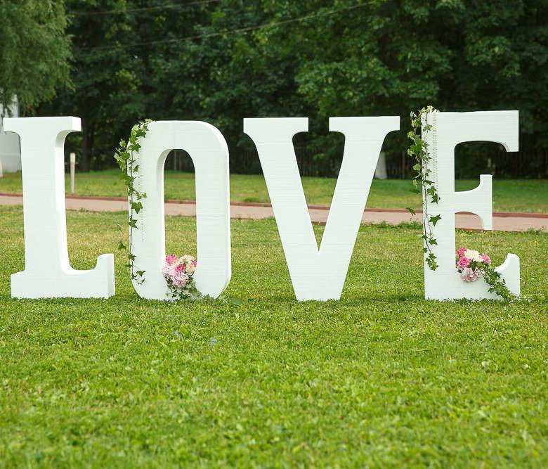 Мы поговорили о материалах и технологиях создания объемных букв на свадьбу. Специально не рассматривали декор, рассказывая о видах, чтобы предложить вам комплекс идей. Выбирайте те из них, которые помогут максимально раскрыть тему праздника или кажутся вам наиболее доступными и удобными для оформления.