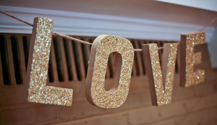 Пуговицы, глиттер, бисер, бусины — используйте красивые штуки, чтобы сделать свои инициалы для свадьбы необычными и симпатичными.