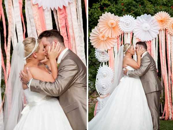 Веерные вертушки из бумаги — идеальный вариант декора для свадьбы на свежем воздухе. Свадебная арка из таких бумажных цветов станет изюминкой вашего торжества и непременно запомнится всем гостям. Композиция из веерных вертушек на стене решит вопрос оформления фотозоны, а еще бумажными веерами можно украсить ресторан, используя их не только в качестве настенного декора, но и в роли подвесных гирлянд.