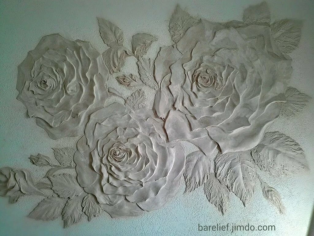 Рельеф делается при помощи мягкого шпателя или фигурного валика. Чтобы состав не прилипал к инструментам, стены сбрызгивается водой.