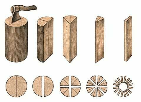 Обычно на клепки идет нижняя часть ствола старых деревьев, она так и называется — «клепочник». Но любитель мастерить и из обыкновенных дров выберет заготовки, и тонкомерный ствол приспособит к делу. Лучше всего делать клепки из сырой древесины.