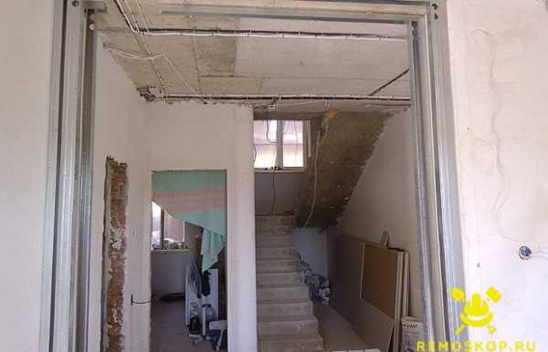 Чтобы после закрепления гипсокартонных листов и слоя шпатлевки конструкция не выступала из стены, каркасные элементы крепятся на расстоянии 1,5—2 см от края проема.
