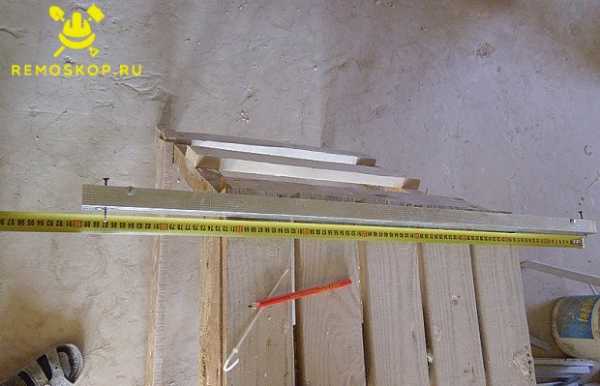 В зафиксированные на полу обрезки вставляем заготовленные детали, идентичные направляющим, укрепленным на стене ранее.