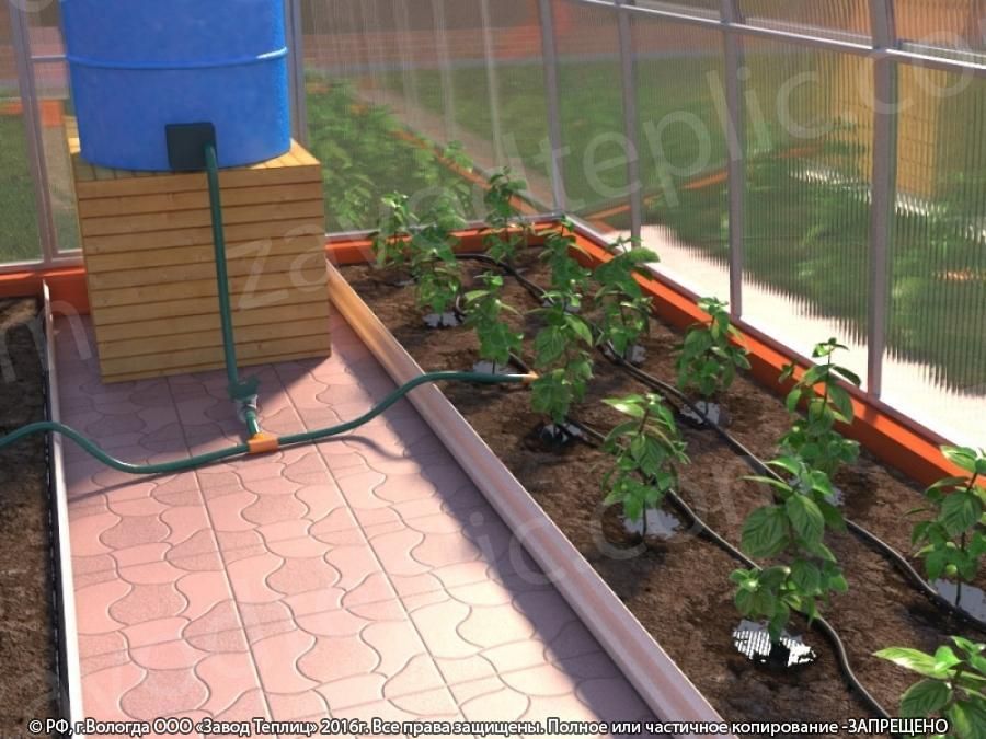 Для выращивания растений в условиях теплицы очень важно, что вода попадает в грунт исключительно вокруг корневища растений, это способствует локальному развитию корневой системы — она не разрастается с сторону более сухих участков.