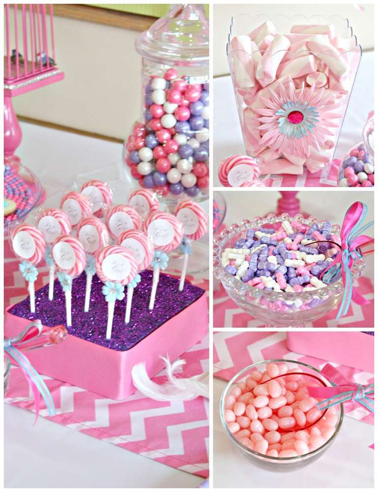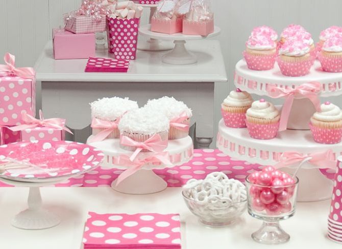 Совет номер один: покупайте как можно больше розовых угощений. Что касается расходных материалов, не забудьте приобрести аптекарские банки для конфет, розовую ленту, розовые подарочные пакеты, пьедесталы для тортов и, конечно же, розовые банты. Вы можете купить многие из этих предметов недорого, а также сделать их экологически чистым выбором (что так важно в наши дни!).