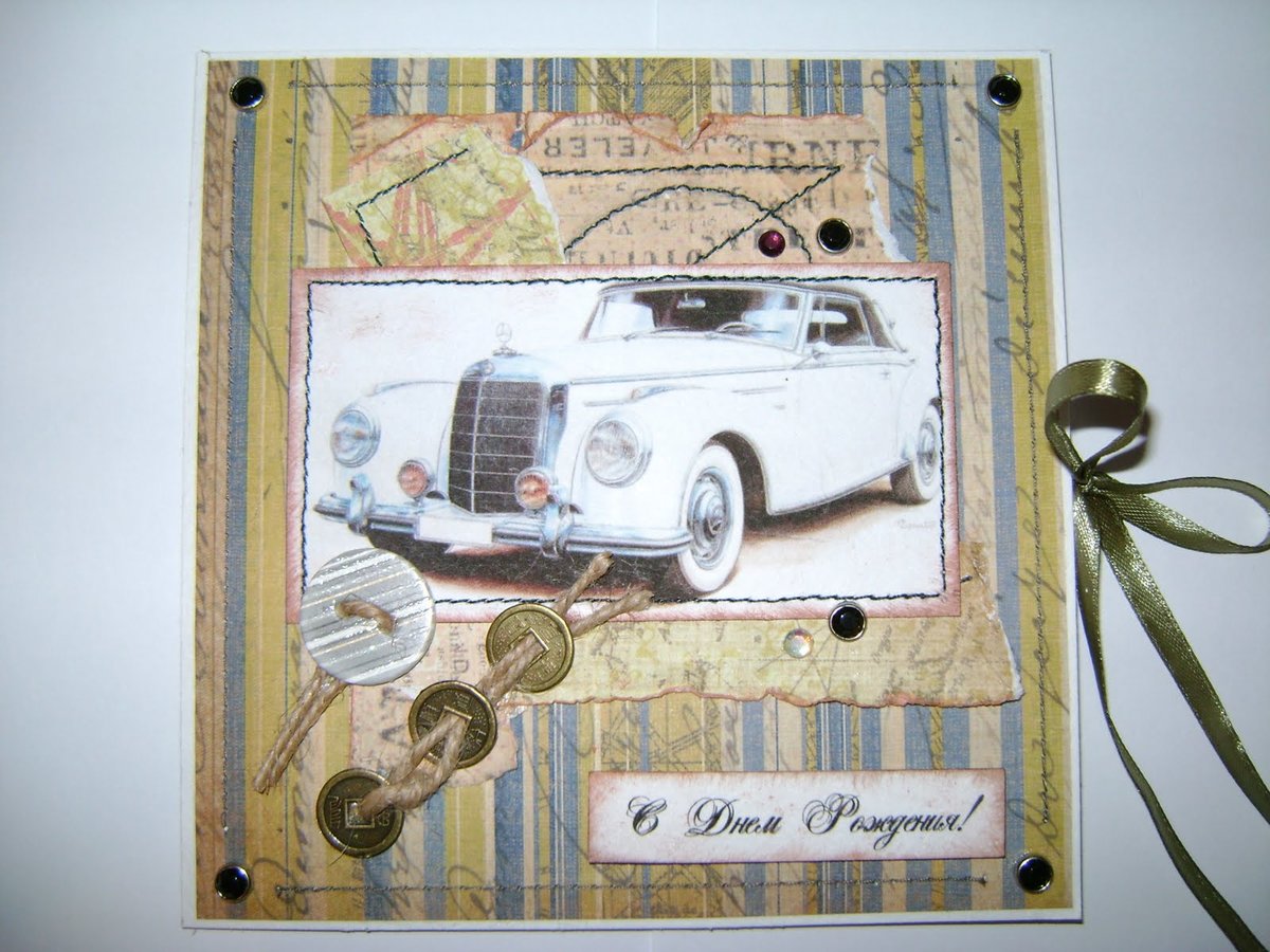Можно, в качестве украшения, использовать монетки, пуговички и атласные ленточки. Но не переборщите — открытка для мальчика должна быть сдержанной и элегантной.