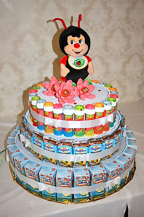 Именинника-сладкоежку на день рождения можно порадовать поделкой из конфет. Это может быть букет, торт или символичная фигурка. Все зависит от количества сладостей которые планируется использовать, и фантазии автора.