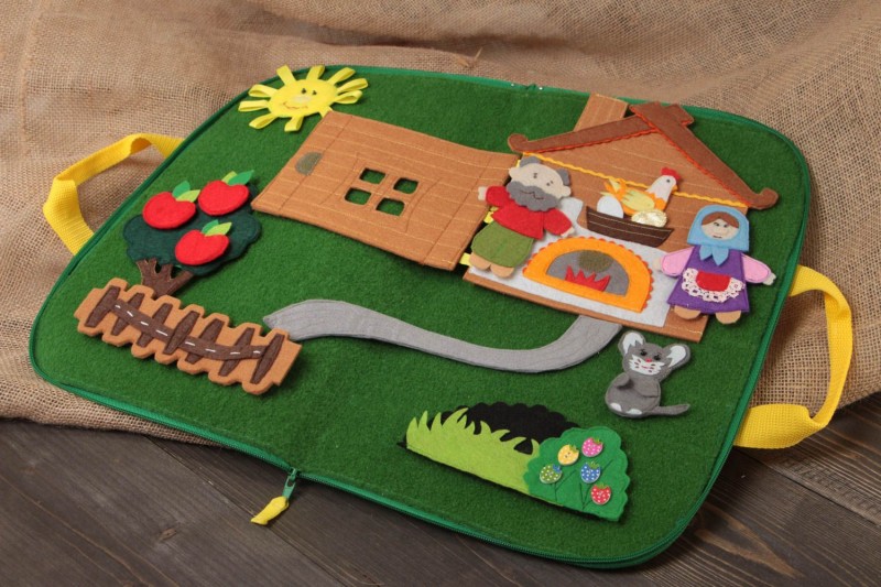 Развивающая игрушка из фетра готова! Можно приклеить игрушку на картон. Так она будет держать форму. Или можно вырезать еще 1 квадрат из фетра, а также из картона. Квадрат из картона помещаем между фетровыми квадратиками и склеиваем или сшиваем.